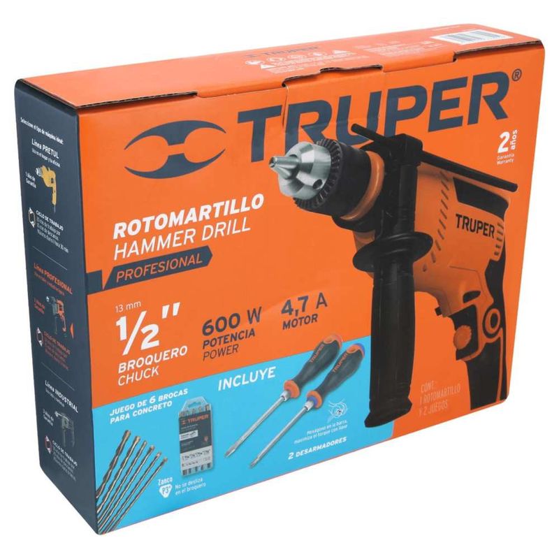 Rotomartillo 1.2 650 W 6 brocas y 2 desarmadores Truper COMBOR12A7