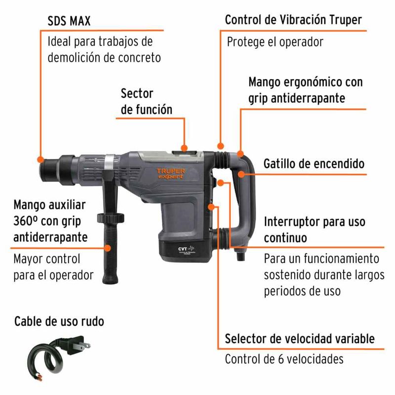 HerramientasUso IndustrialRotomartillos y TaladrosRotomartillo SDS Max 9 kg 15 J 1500 W Truper Expert RMAX15NX