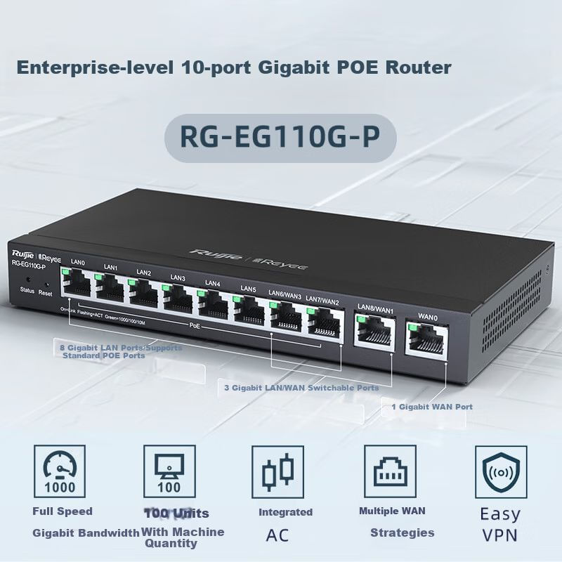 Router Ruijie Rg-Eg110G-P Poe Gigabit 1000 Mbps 8 Puertos