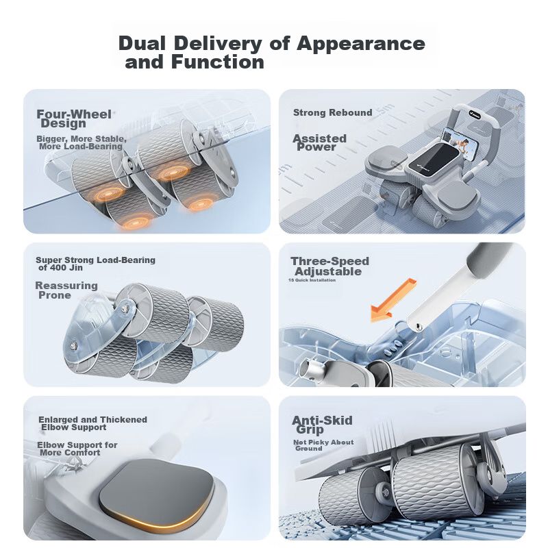 Rodillo abdominal equipo MERACH con soporte para codos unisex