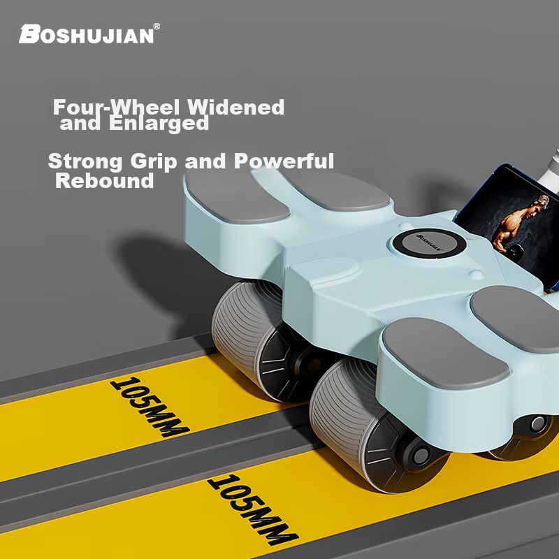 Rodillo abdominal BOSHUJIAN de cuatro ruedas con apoyo para codos y retorno automático