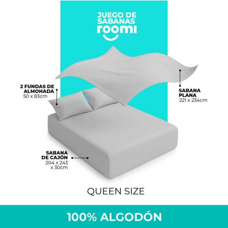 Sábanas Queen Size Roomi 100% Algodón Premium Color Gris