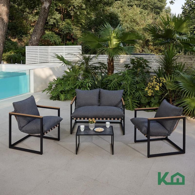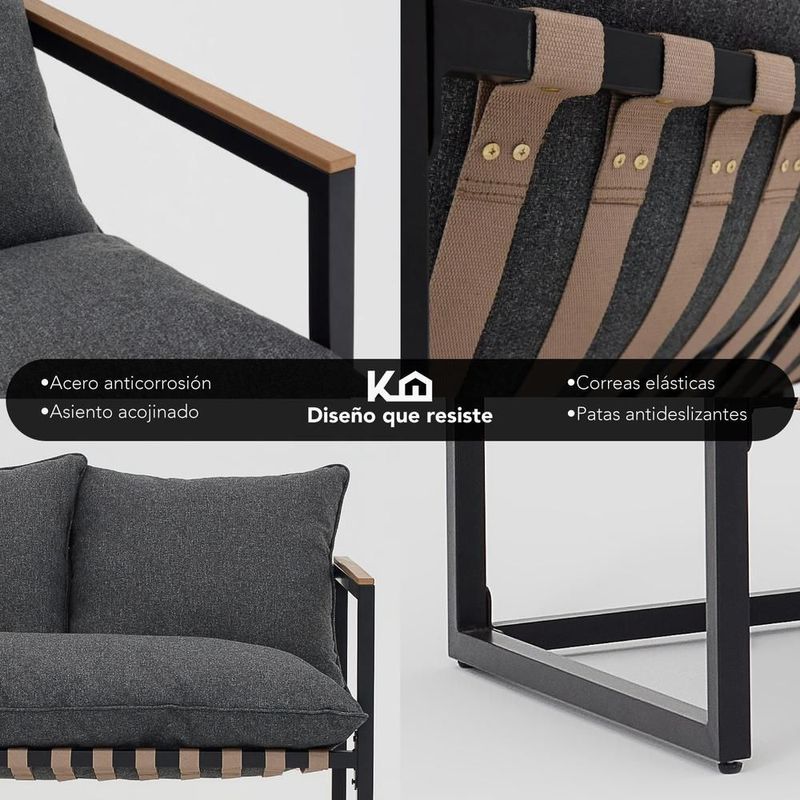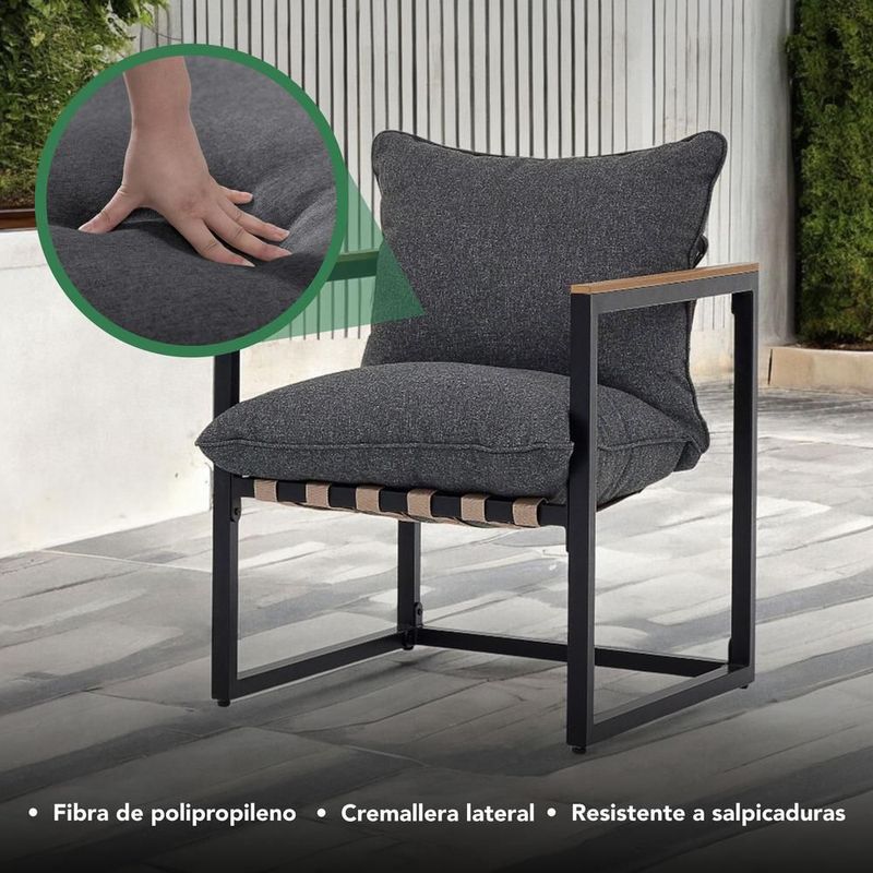 Sala De Jardín Acero Sillón Mesa + Cojines Exterior Terraza