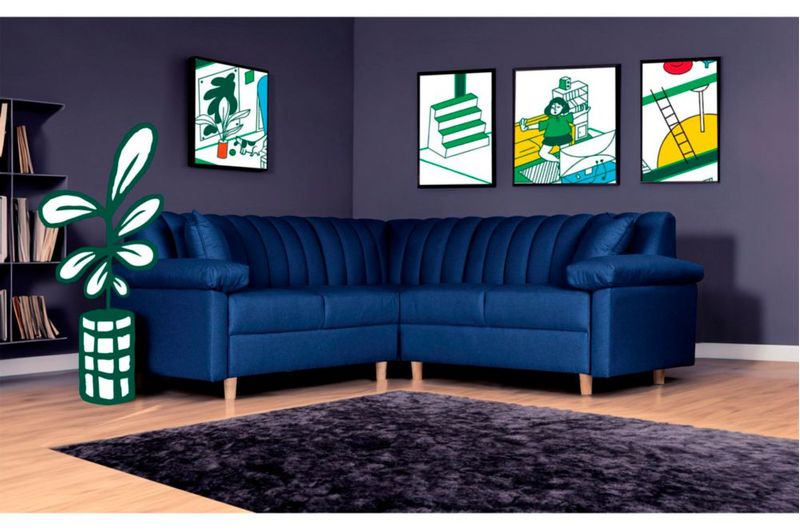 Sala Esquinera Makora De Lino Azul Modelo Miller
