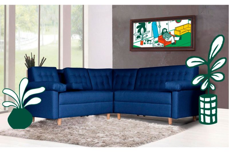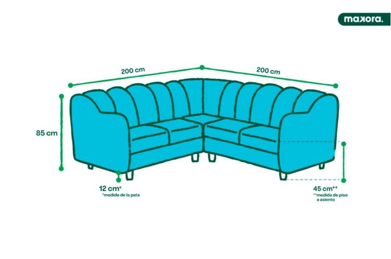 Sala Esquinera Makora De Lino Azul Modelo Pepper