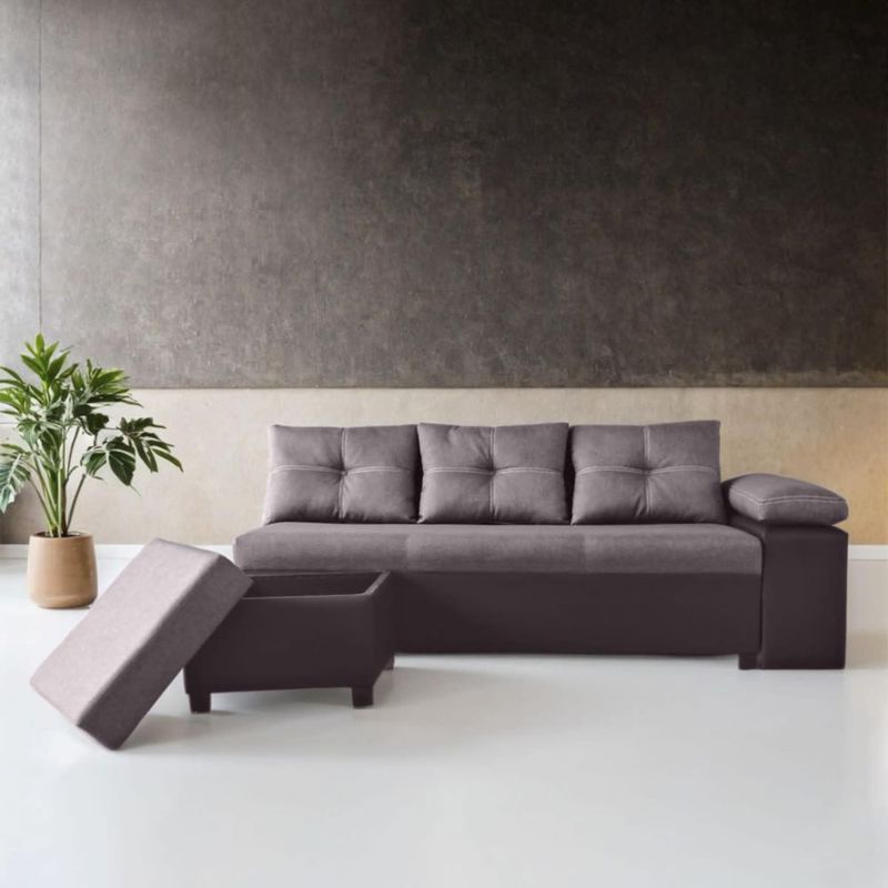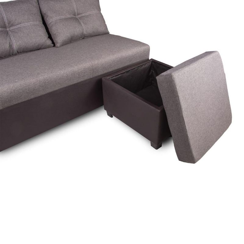 Sala Esquinera Modular Isabela con Baúl Oculto | Color Gris Elegante y Funcional