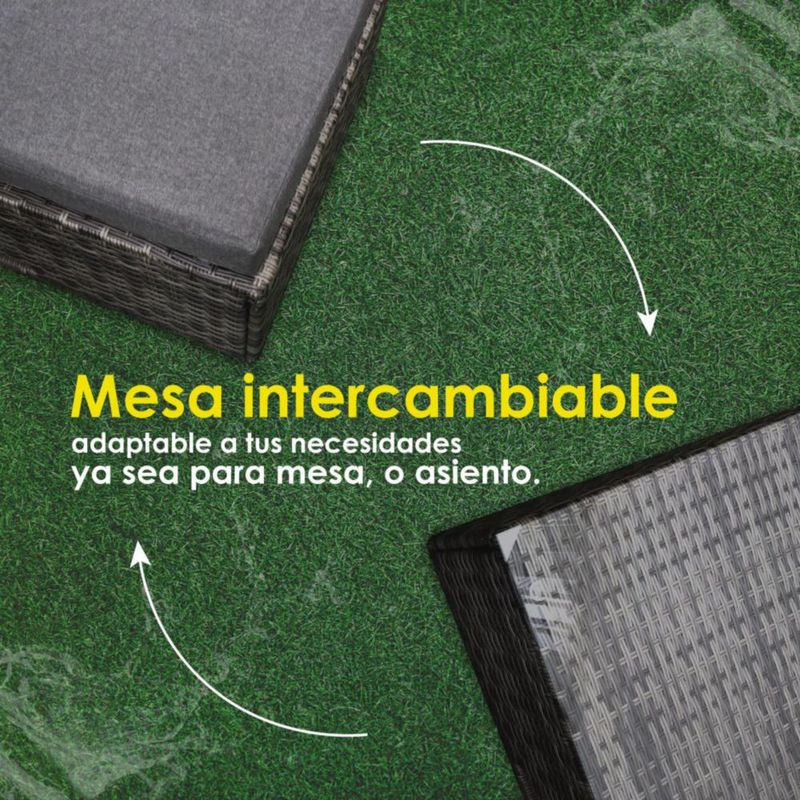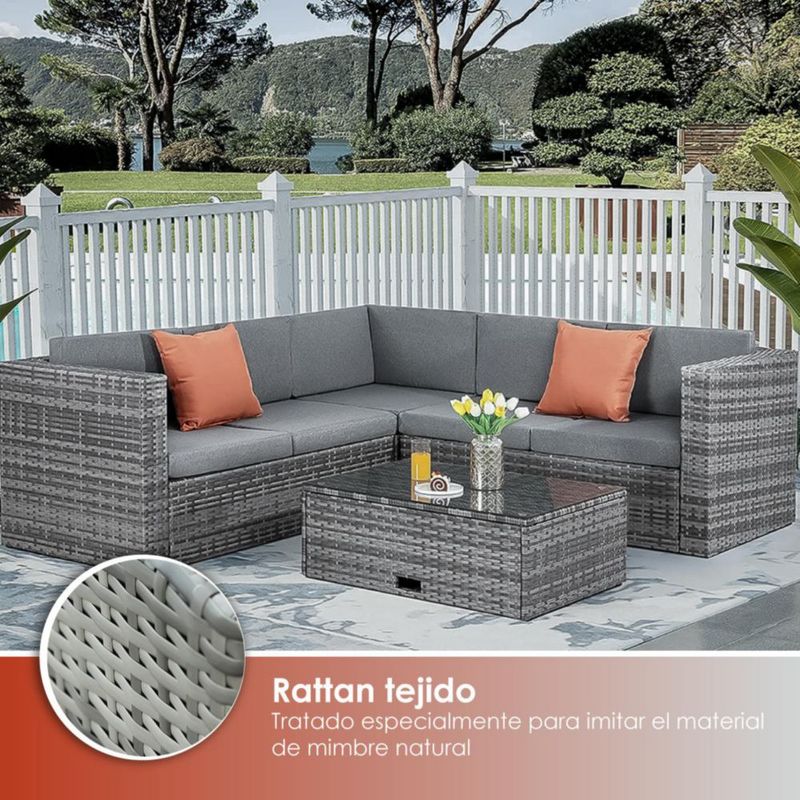 Sala esquinera para exteriores de mimbre rattan (Gris)