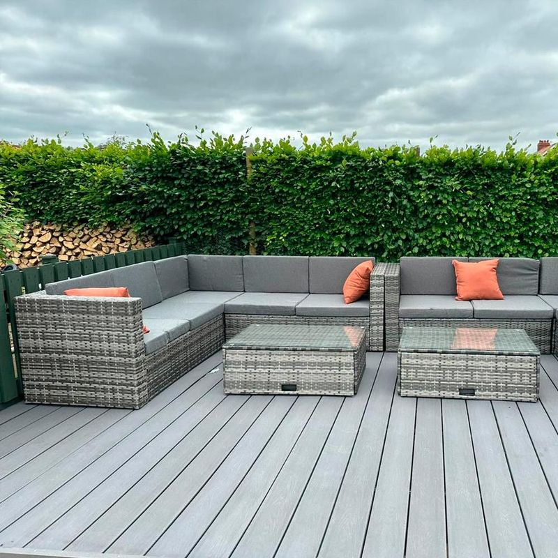HogarPatio y JardínSillas, Sillones, Bancos y SofásSala esquinera para exteriores de mimbre rattan (Gris)