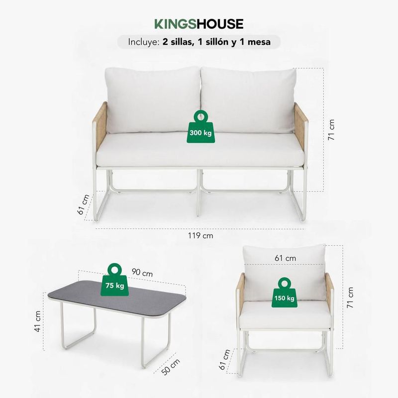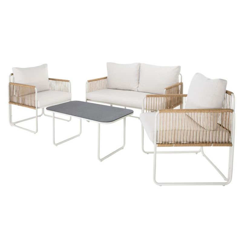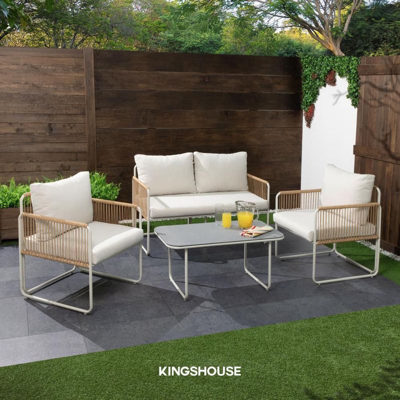 HogarPatio y JardínSillas, Sillones, Bancos y SofásSala exterior de rattan esquinera juego jardín sunset 4 pzas beige