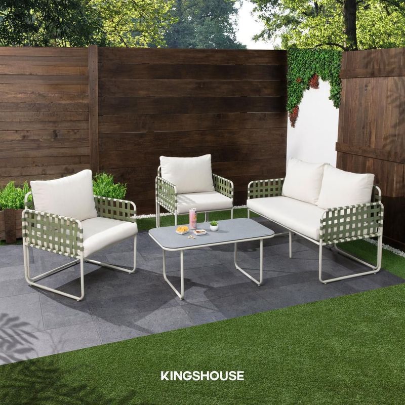Sala exterior de rattan esquinera juego jardín sunset 4 pzas verde