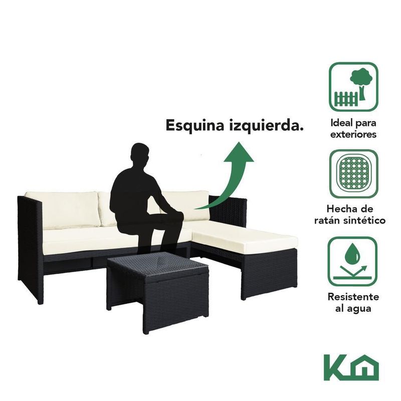Sala exterior esquinera izquierda mueble jardín ratan sofa beige