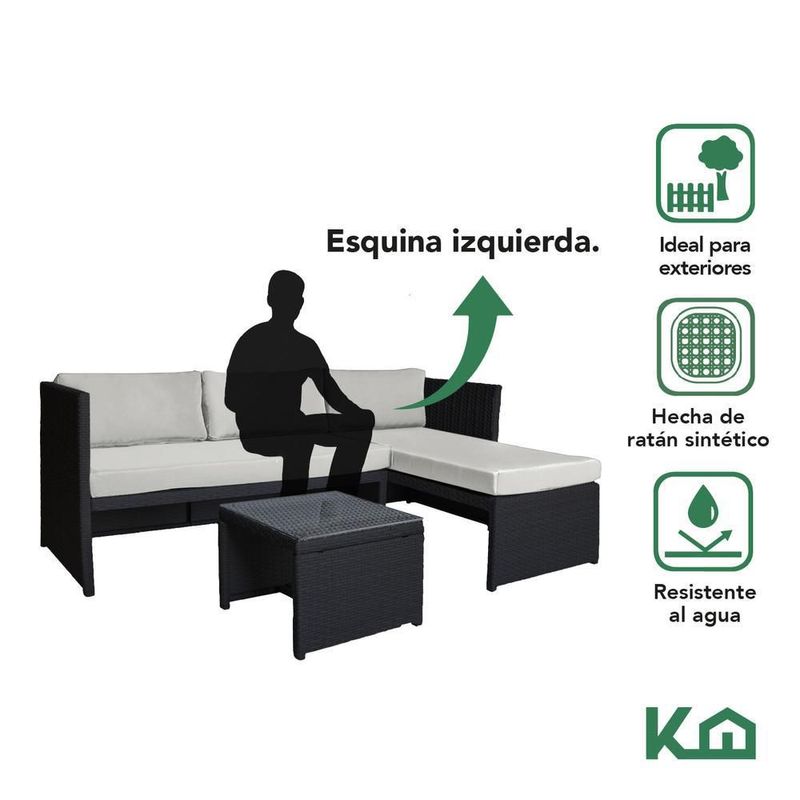 Sala exterior esquinera izquierda mueble jardín ratan sofa gris
