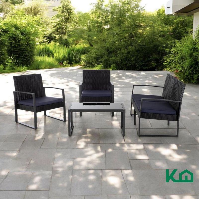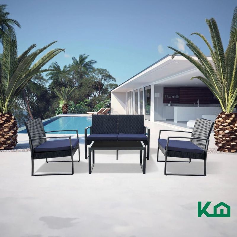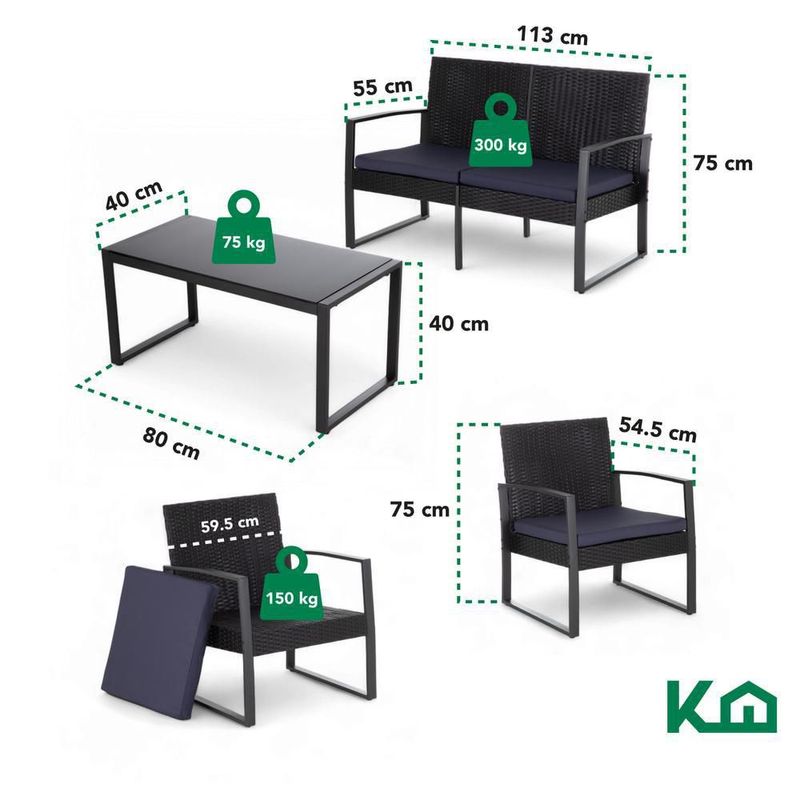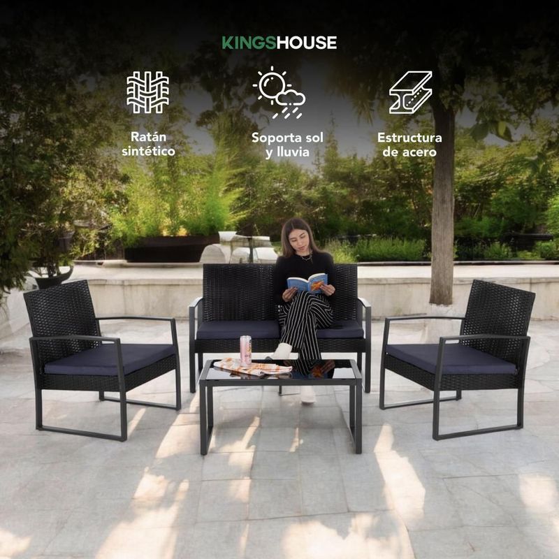 HogarPatio y JardínSillas, Sillones, Bancos y SofásSala exterior juego para jardín summer rattan 4 pzs+cojines gris