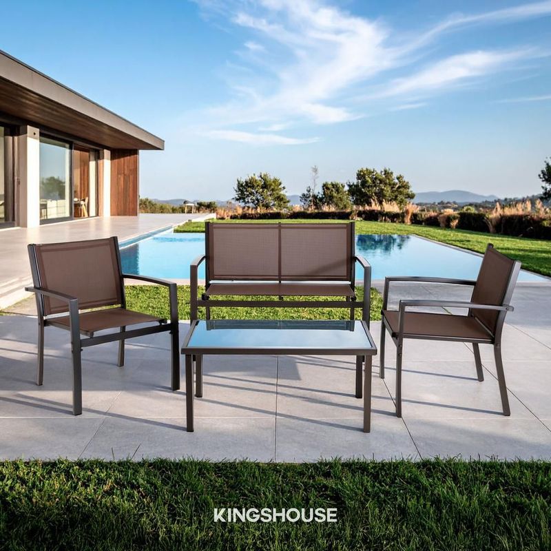 HogarPatio y JardínSillas, Sillones, Bancos y SofásSala exterior para jardín mesa sillón greenhouse 4 pzas Café