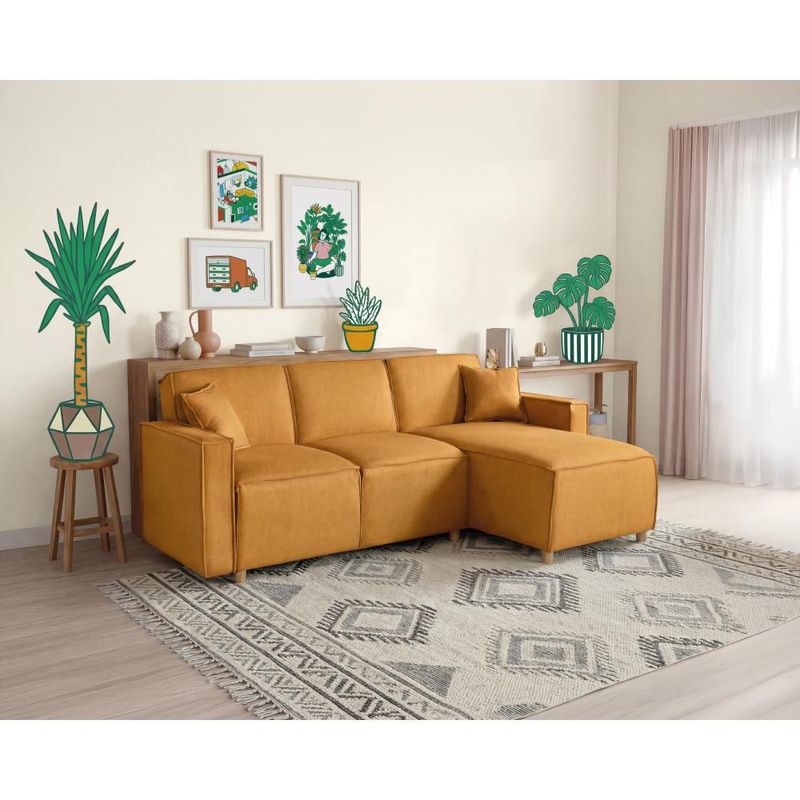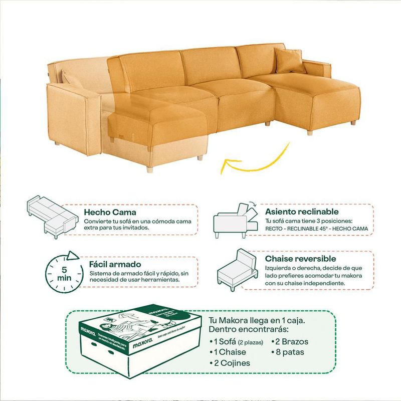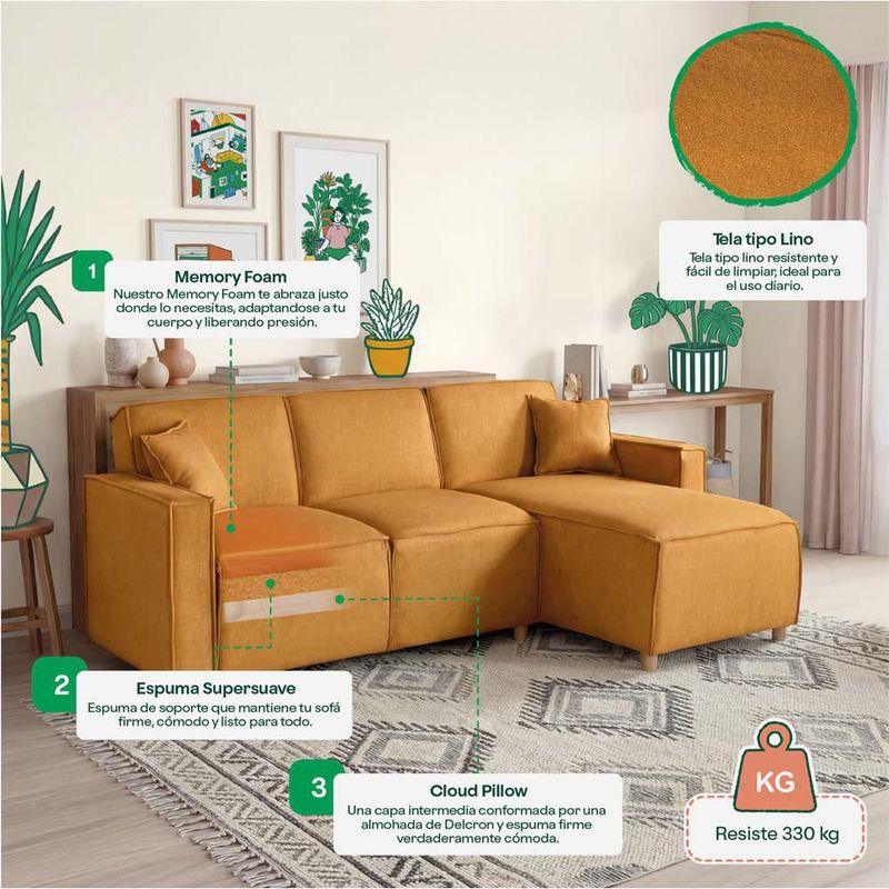 Sala Modular Bennet Mostaza Con Memory Foam Respaldo Reclinable 3 Posiciones Con Chaise Lounge Reversible