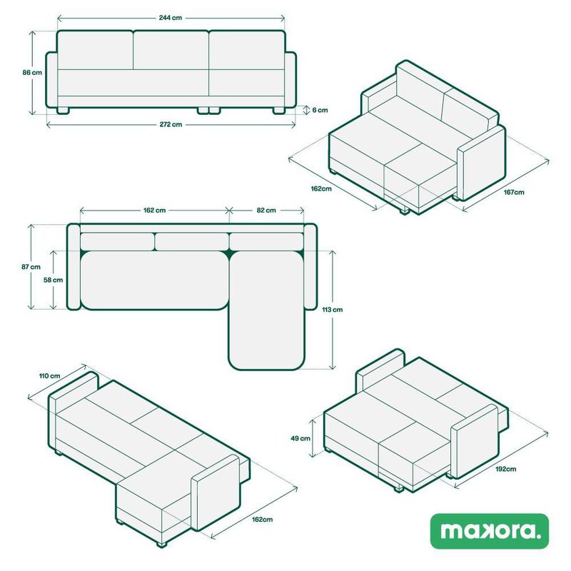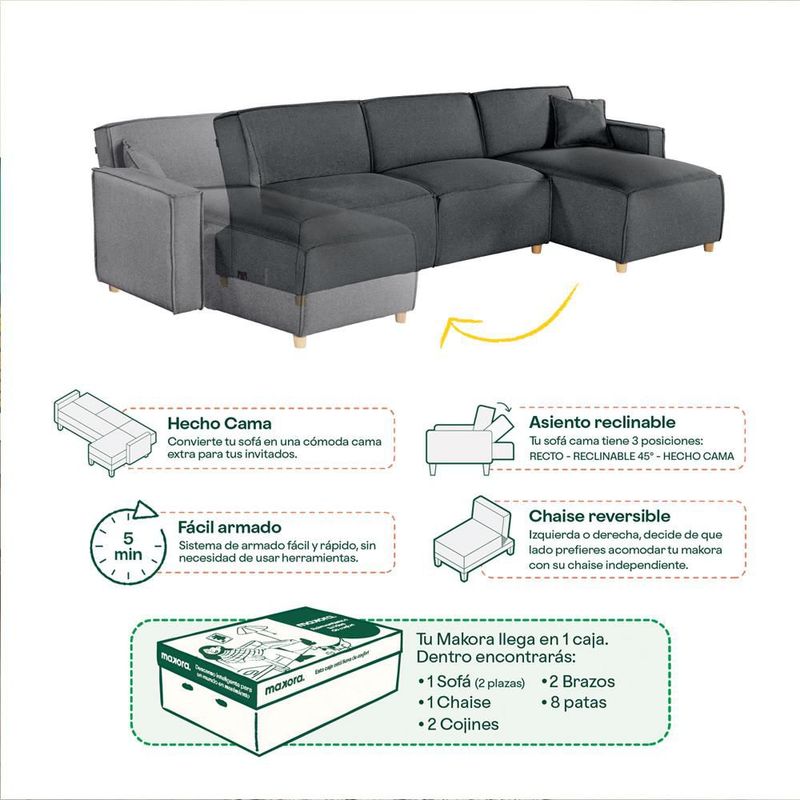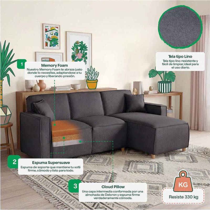 Sala Modular Bennet Oxford Con Memory Foam Respaldo Reclinable 3 Posiciones Con Chaise Lounge Reversible
