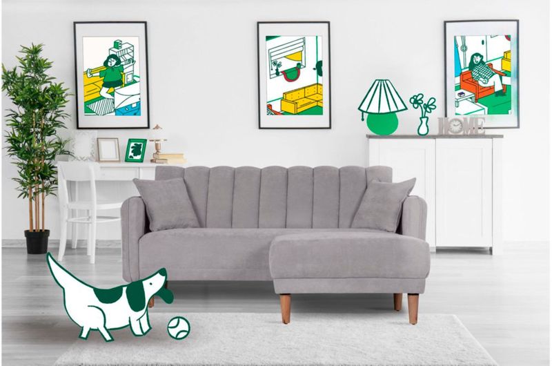 MueblesSalaSalasSala Modular Makora Reversible De Terciopelo Gris Claro Modelo Avocata