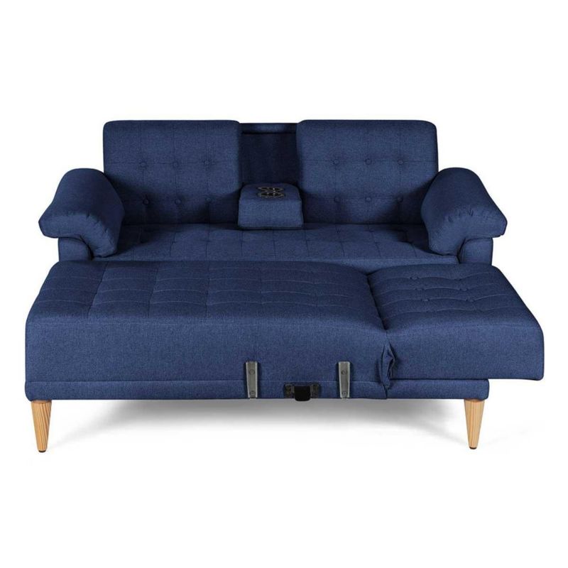 Sala Modular Reversible Brunello Color Azul Con Memory Foam Respaldo Reclinable 3 Posiciones