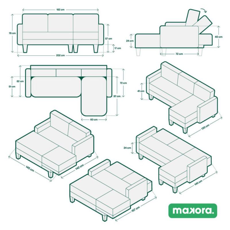 MueblesSalaSalasSala Modular Reversible Brunello Color Gris Oxford Con Memory Foam Respaldo Reclinable 3 Posiciones