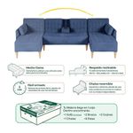 Sala Modular Reversible De Velvet Azul Modelo Hassan