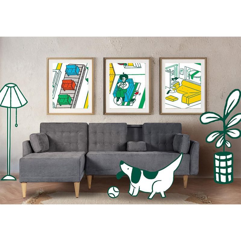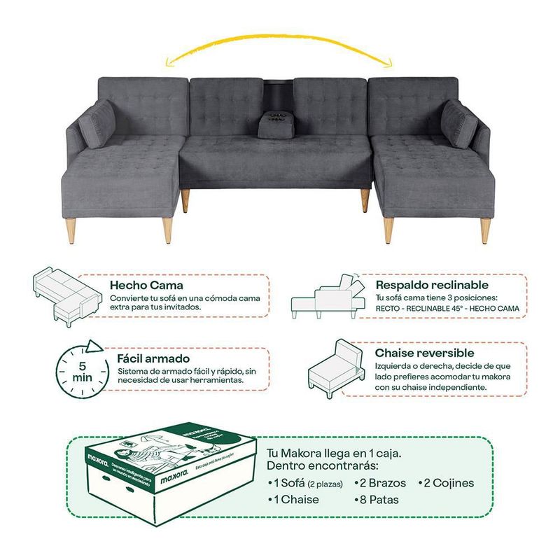 Sala Modular Reversible De Velvet Gris Oxford Modelo Hassan