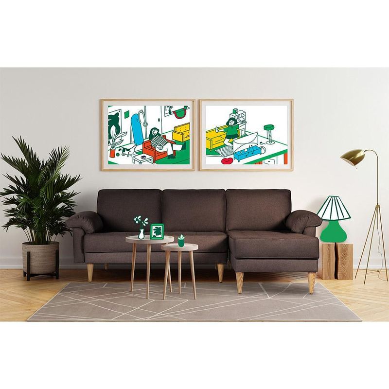 Sala Modular Reversible Makora Cavalli Con Memory Foam, Color Chocolate, Lino Respaldo Reclinable De 3 posiciones.