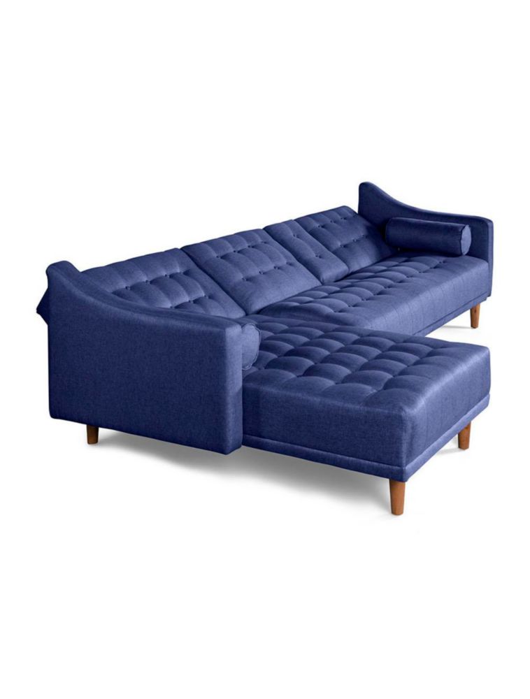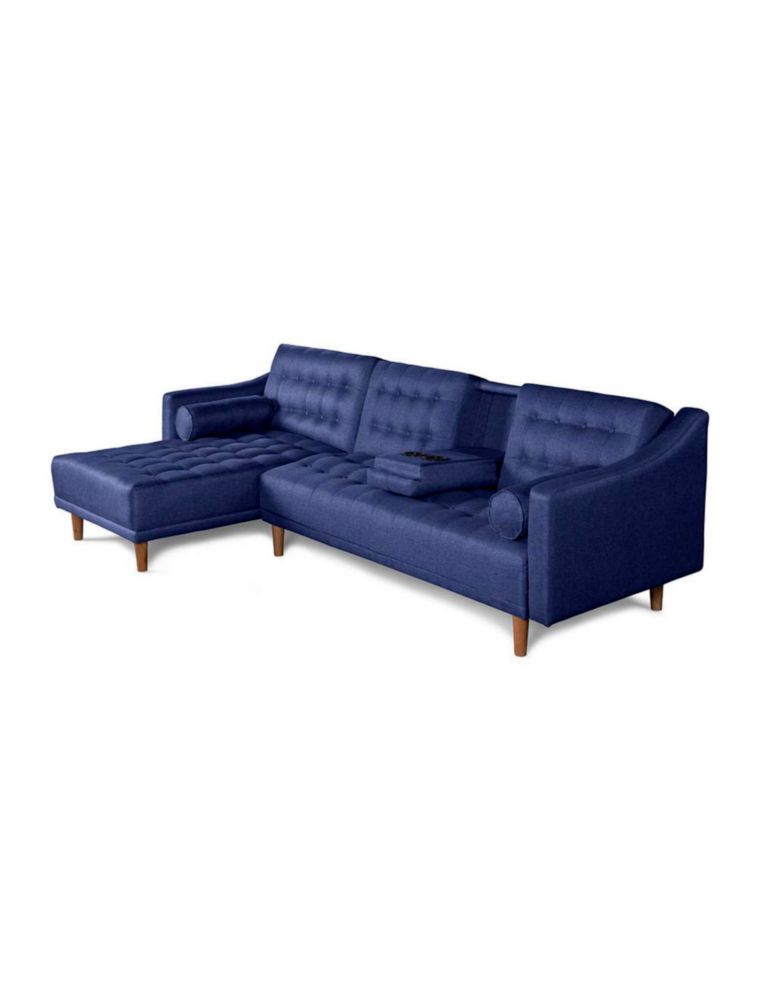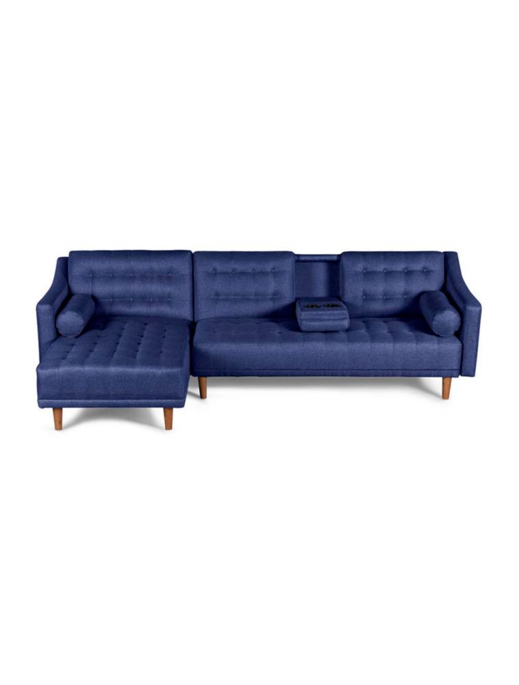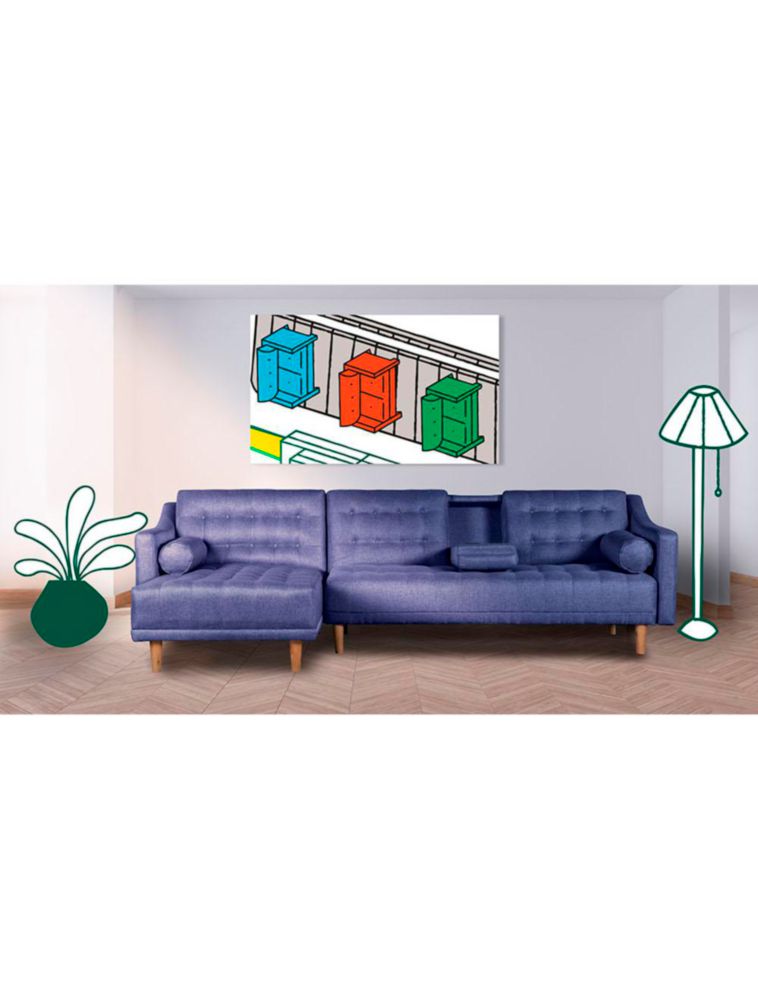 Sala Modular Reversible Makora Duomo Con Memory Foam, Color Azul, Lino Respaldo Reclinable De 3 posiciones.