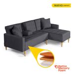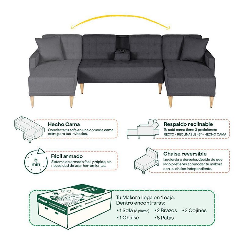 MueblesSalaSalasSala Modular Reversible Makora Kendall Con Memory Foam, Color Gris Oxford, Lino Respaldo Reclinable De 3 posiciones.