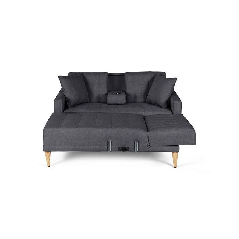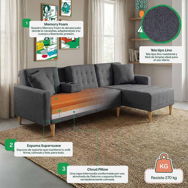 Sala Modular Reversible Makora Kendall Con Memory Foam, Color Gris Oxford, Lino Respaldo Reclinable De 3 posiciones.