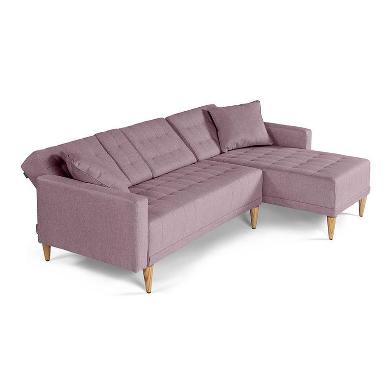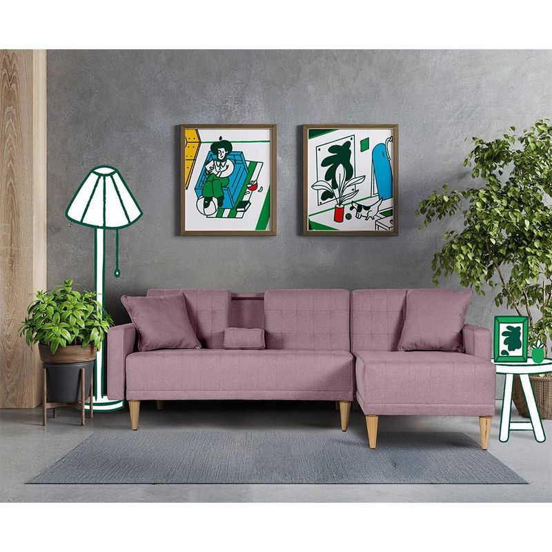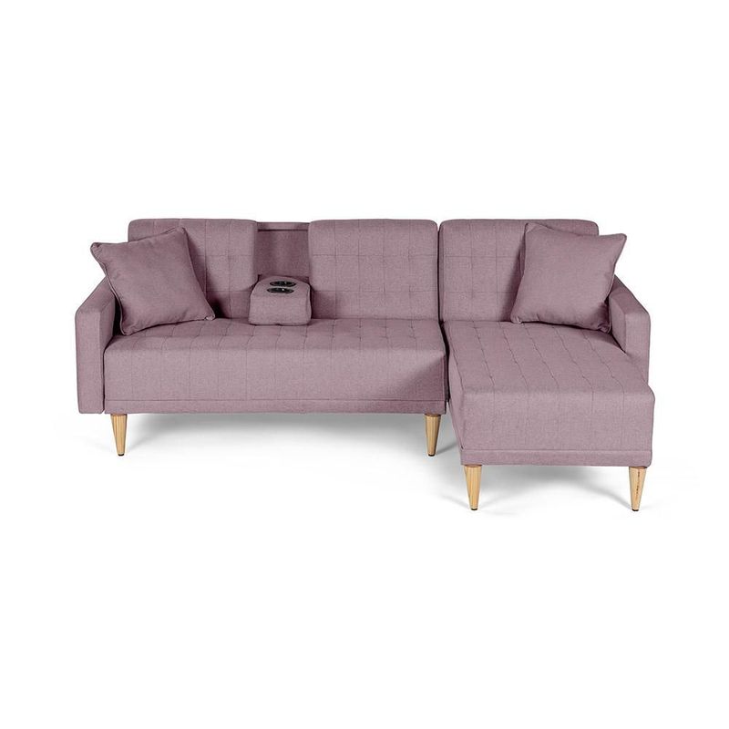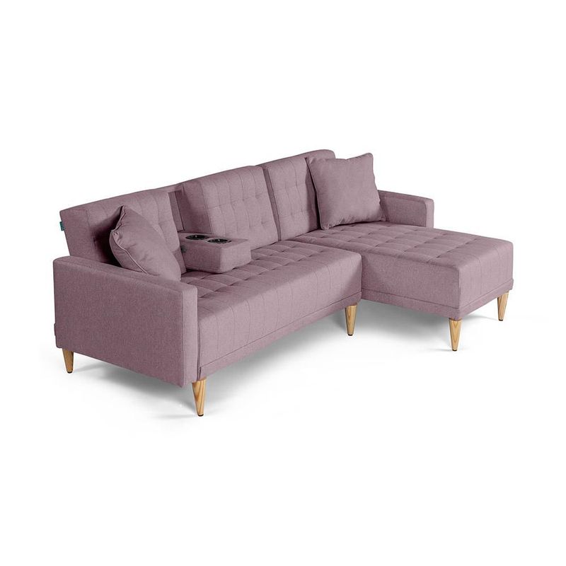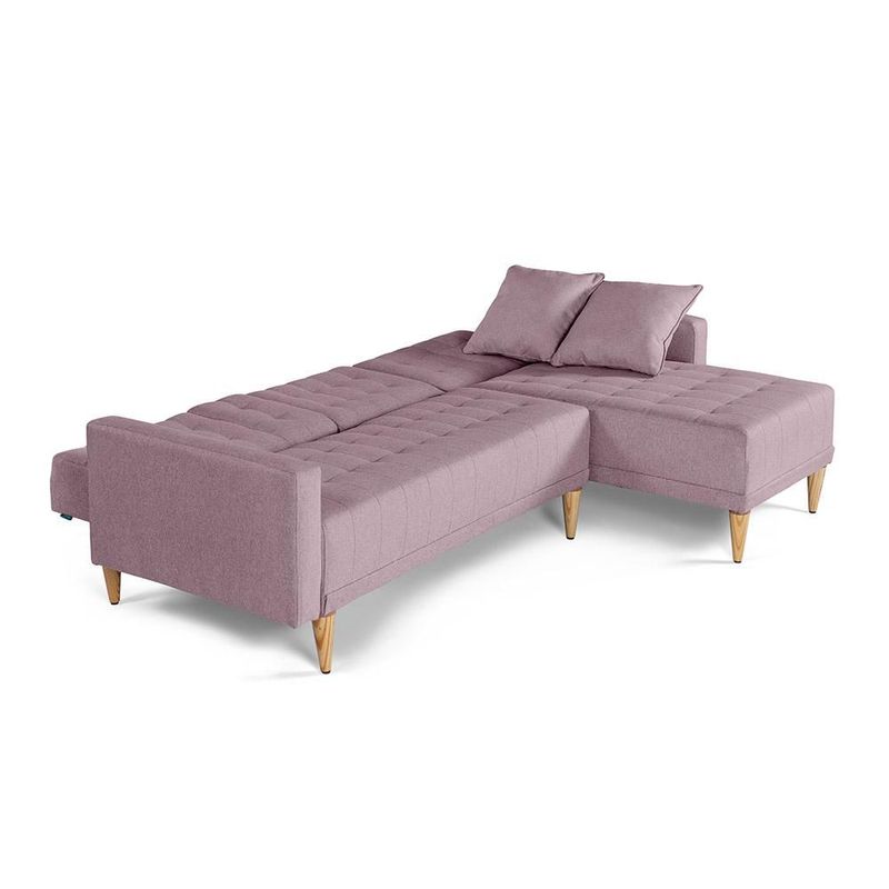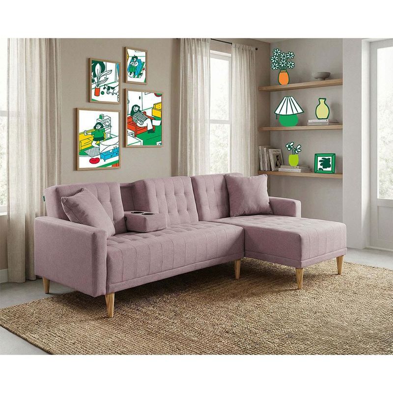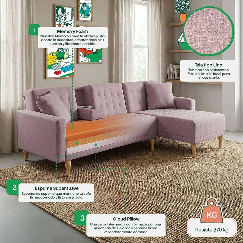 Sala Modular Reversible Makora Kendall Con Memory Foam, Color Palo De Rosa, Lino Respaldo Reclinable De 3 posiciones.
