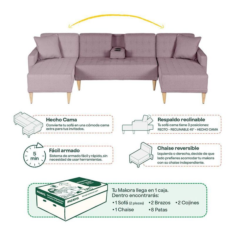 MueblesSalaSalasSala Modular Reversible Makora Kendall Con Memory Foam, Color Palo De Rosa, Lino Respaldo Reclinable De 3 posiciones.
