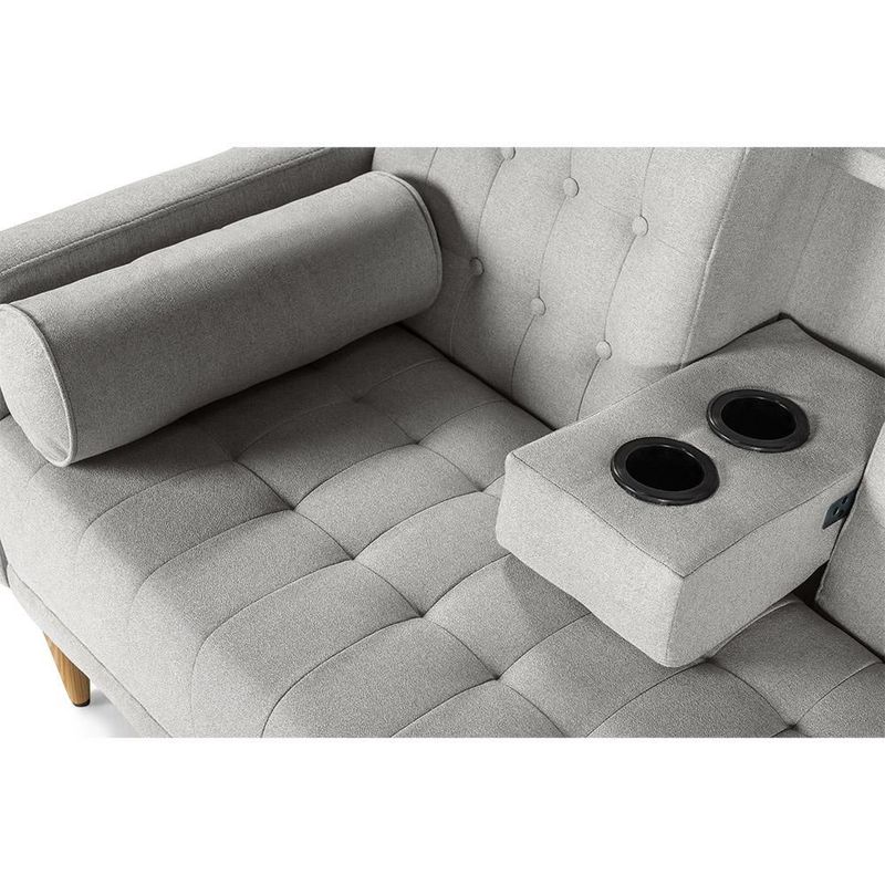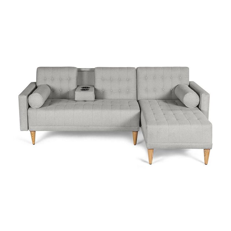 Sala Modular Reversible Makora Tyson Con Memory Foam, Color Gris Claro, Lino Respaldo Reclinable De 3 posiciones.