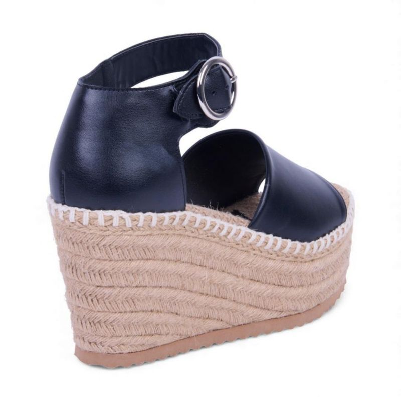 ZapatosZapatos de MujerSandaliasSandalia Plataforma Negro con Pulsera y Adorno Dorado 759-40