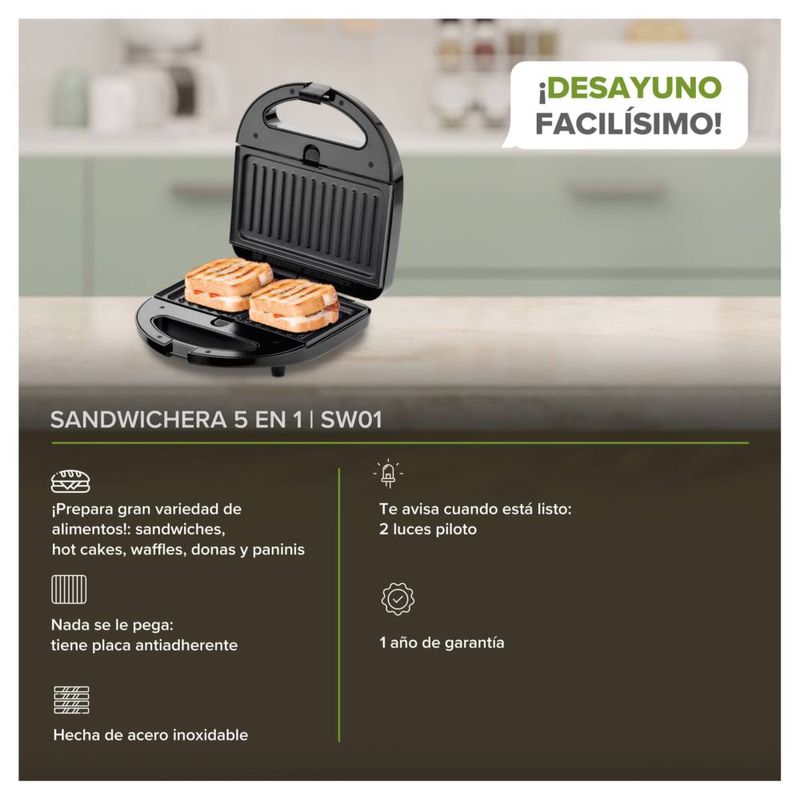 Sandwichera 5 En 1 Distintos Moldes Waflera Avera SW01