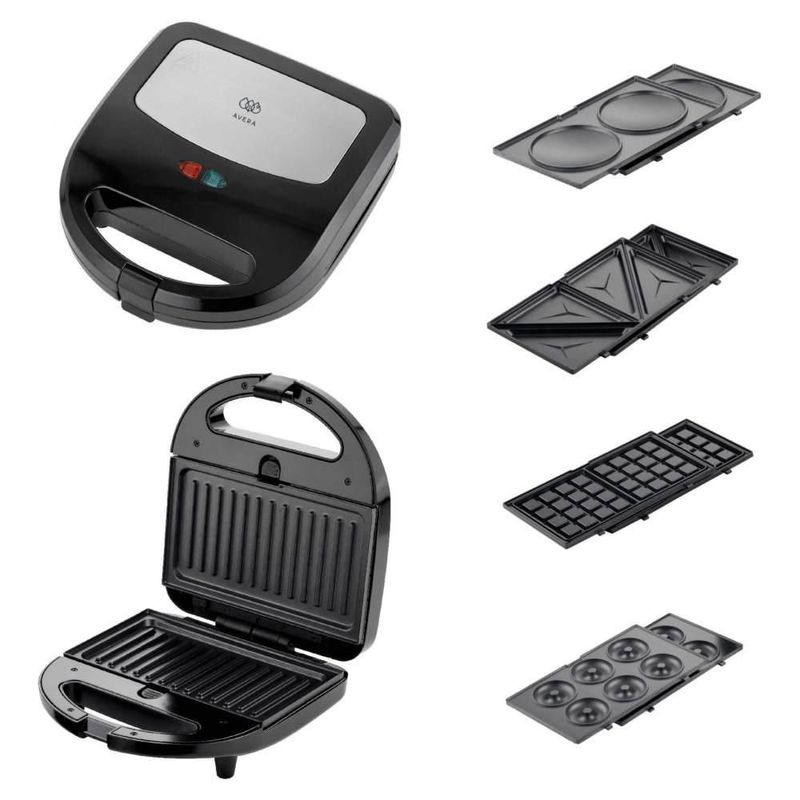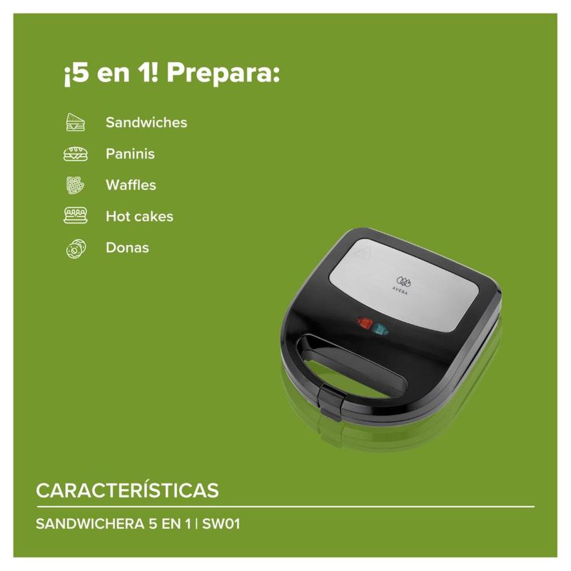 Sandwichera 5 en 1 waffles, hot cakes, sandwiches, donas y paninis Avera SW01