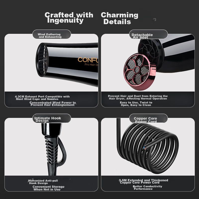 Belleza y Cuidado PersonalCuidado del cabelloSecadorasSecador de cabello KF-8946 2400W Negro CONFU