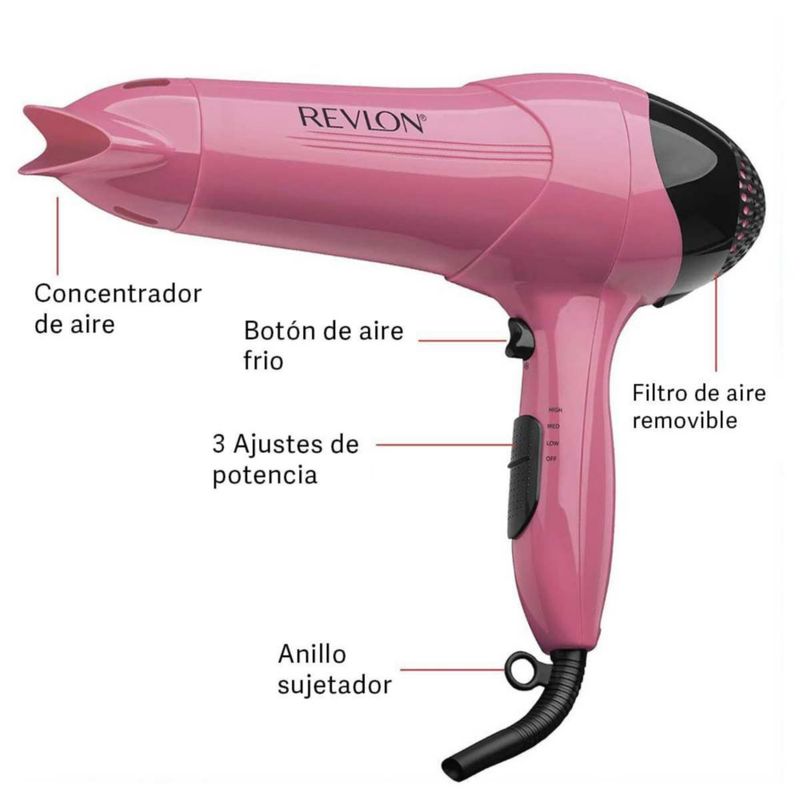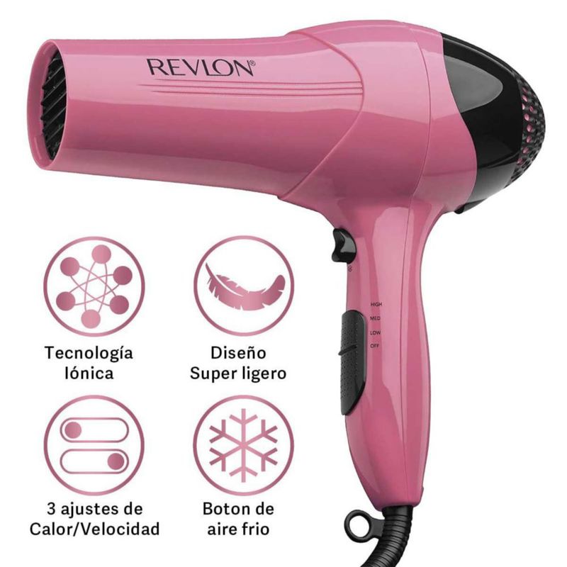 Secadora Revlon 474 Rosa 1875 W 3 Niveles de temperatura y velocidad