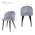 Set 2 Sillas Comedor Terciopelo Modernas Acolchadas Gris