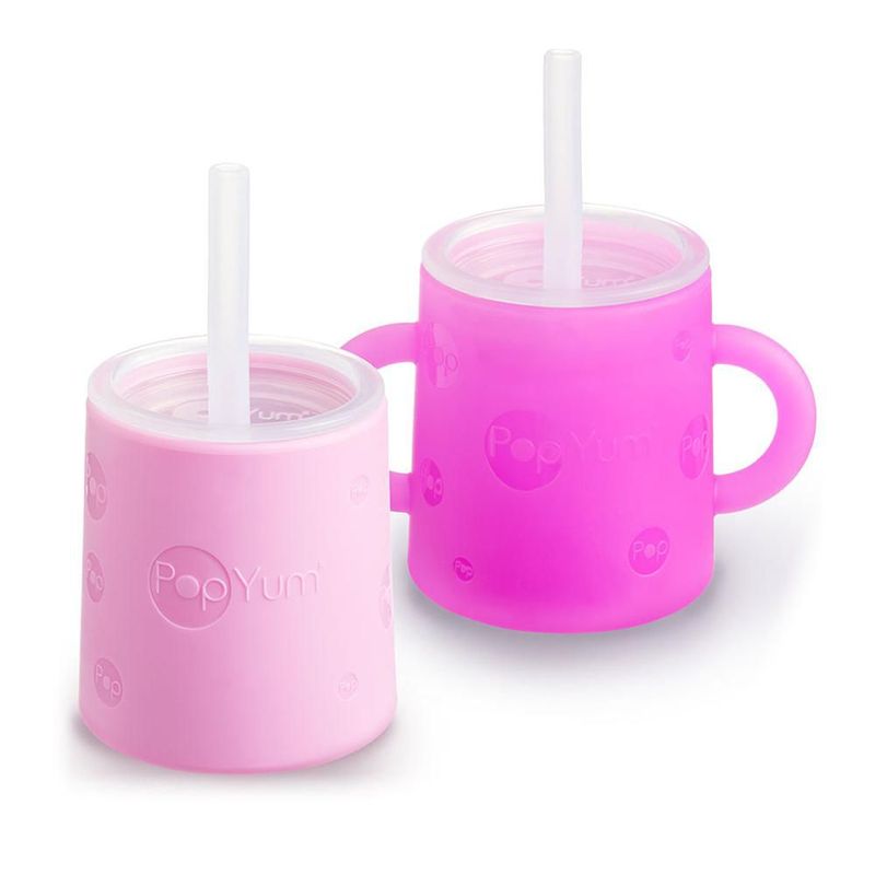 Bebés y juguetesBebésAlimentaciónSet 2 Vasos Entrenadores PopYum de Silicón 5oz/150ml con Tapa y Popote Color Rosa y Morado