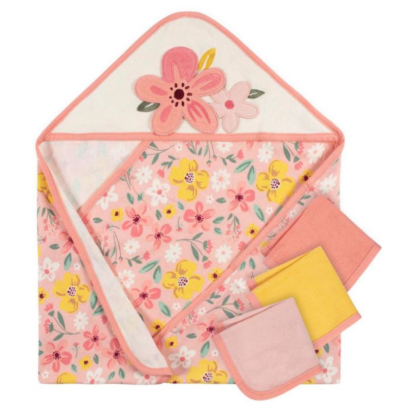 Set 4 toallas bebé Gerber capucha y paños 80% algodón rosa
