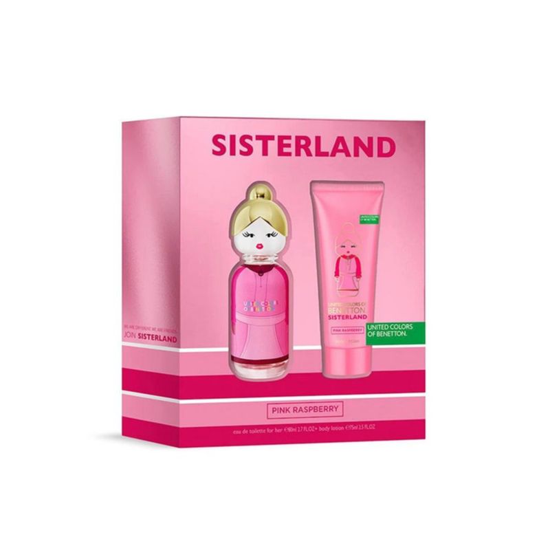 Belleza y Cuidado PersonalPerfumes y locionesSetsSET BENETTON SISTERLAND PINK RASPBERRY 2PZS 80ML EDT SPRAY/ BODY LOTION 75ML
