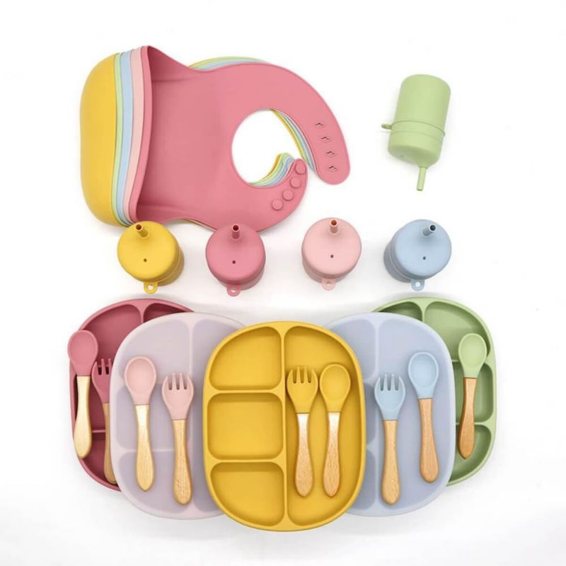 Set comida para bebe de silicona vaso plato cubiertos babero SIN BPA