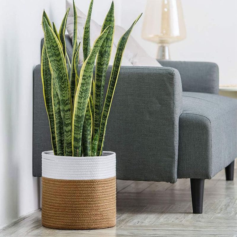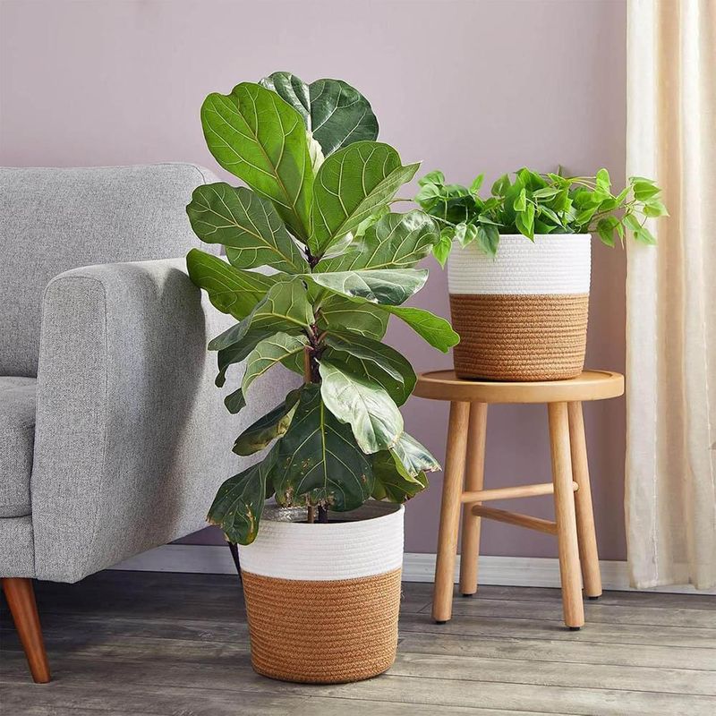 Set de 2 Cestas Plegables PERFECT SPACE para Plantas y Ropa | Algodón y Yute, Decoración Moderna (30x30 y 25x25 cm)