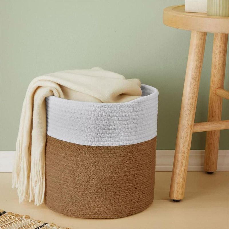 HogarDecoraciónOrganizaciónSet de 2 Cestas Plegables PERFECT SPACE para Plantas y Ropa | Algodón y Yute, Decoración Moderna (30x30 y 25x25 cm)