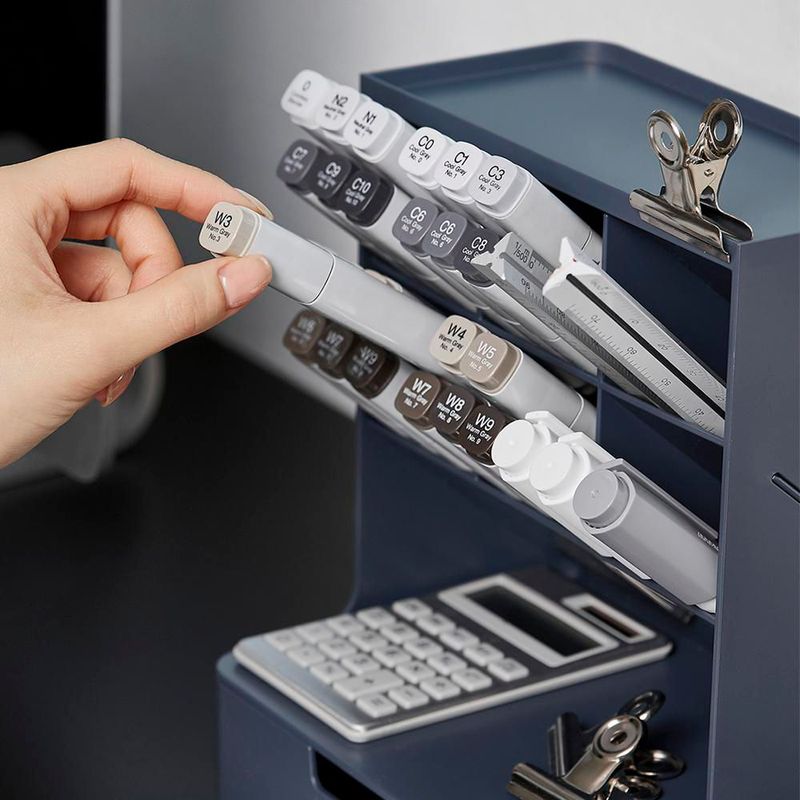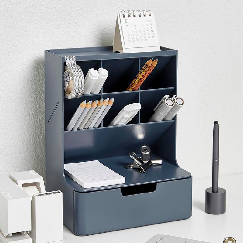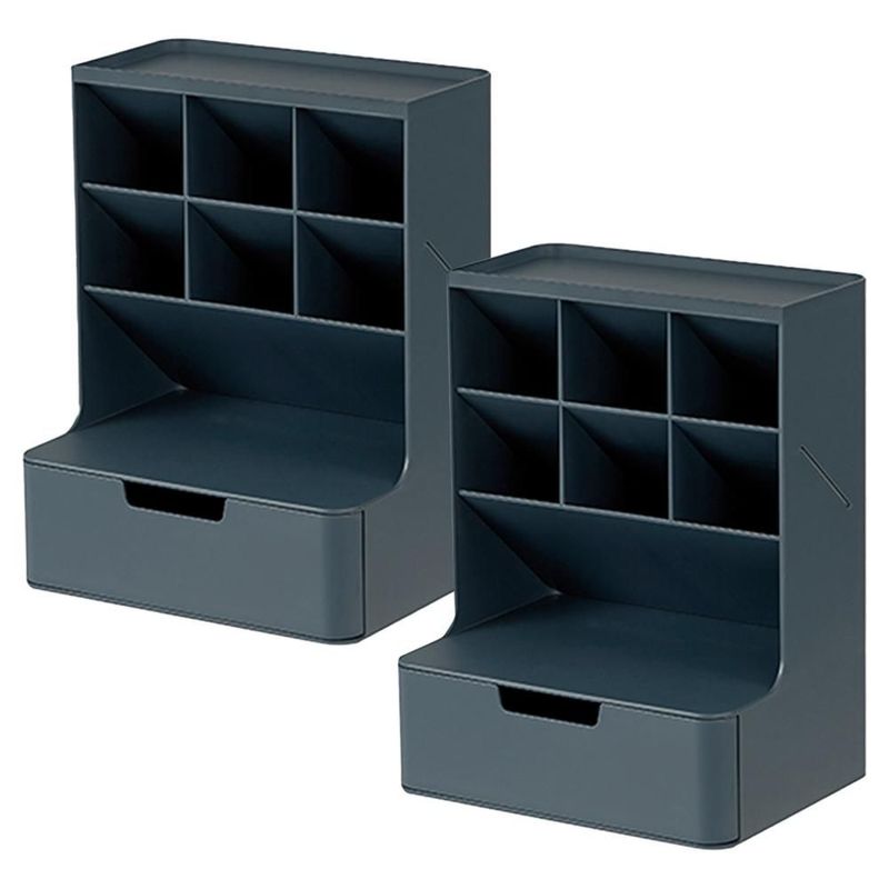 HogarPapelería, Mercería y ArteMaterial de ArchivoSet de 2 Organizadores Multifuncionales de Escritorio LITEM Color Azul | Con 6 Compartimentos y Cajón Deslizante | Diseño Moderno y Resistente