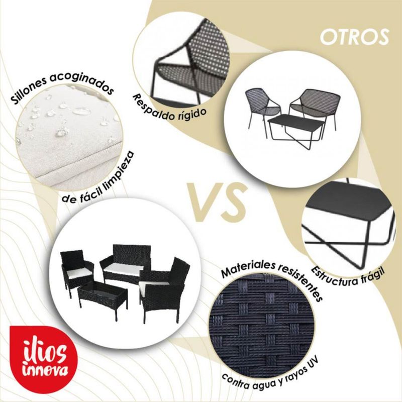 HogarPatio y JardínSillas, Sillones, Bancos y SofásSet de 2 Salas Ilios Innova Color Negro. Ideal para terraza o jardín.