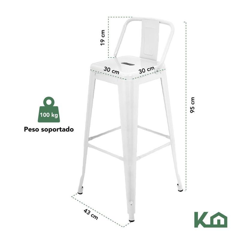 Set de 2 sillas banco alto respaldo tipo tolix vintage hogar blanco