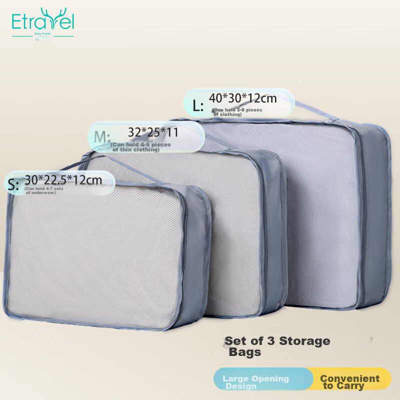 Set de 3 Organizadores de Ropa Compresibles de Tela Gris