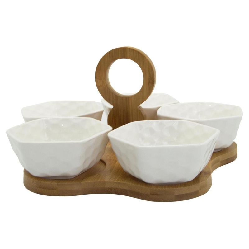 HogarMesaServicio de MesaSet de 5 botaneros blancos con base de bambú