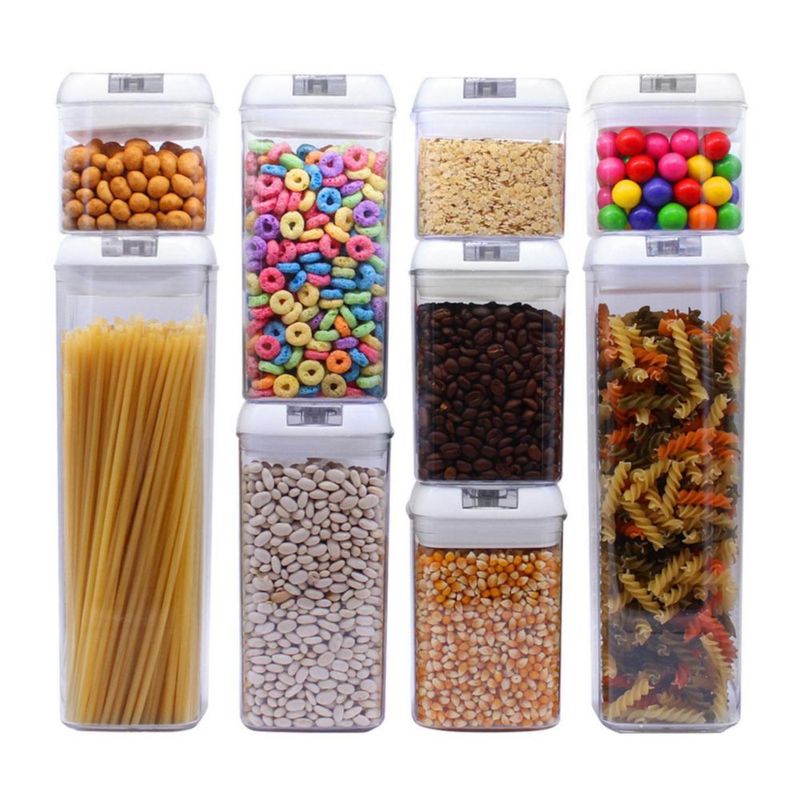 HogarCocinaContenedoresSet De 9 Contenedores Para Cocina Con Tapa Hermética, Tapa Blanca.